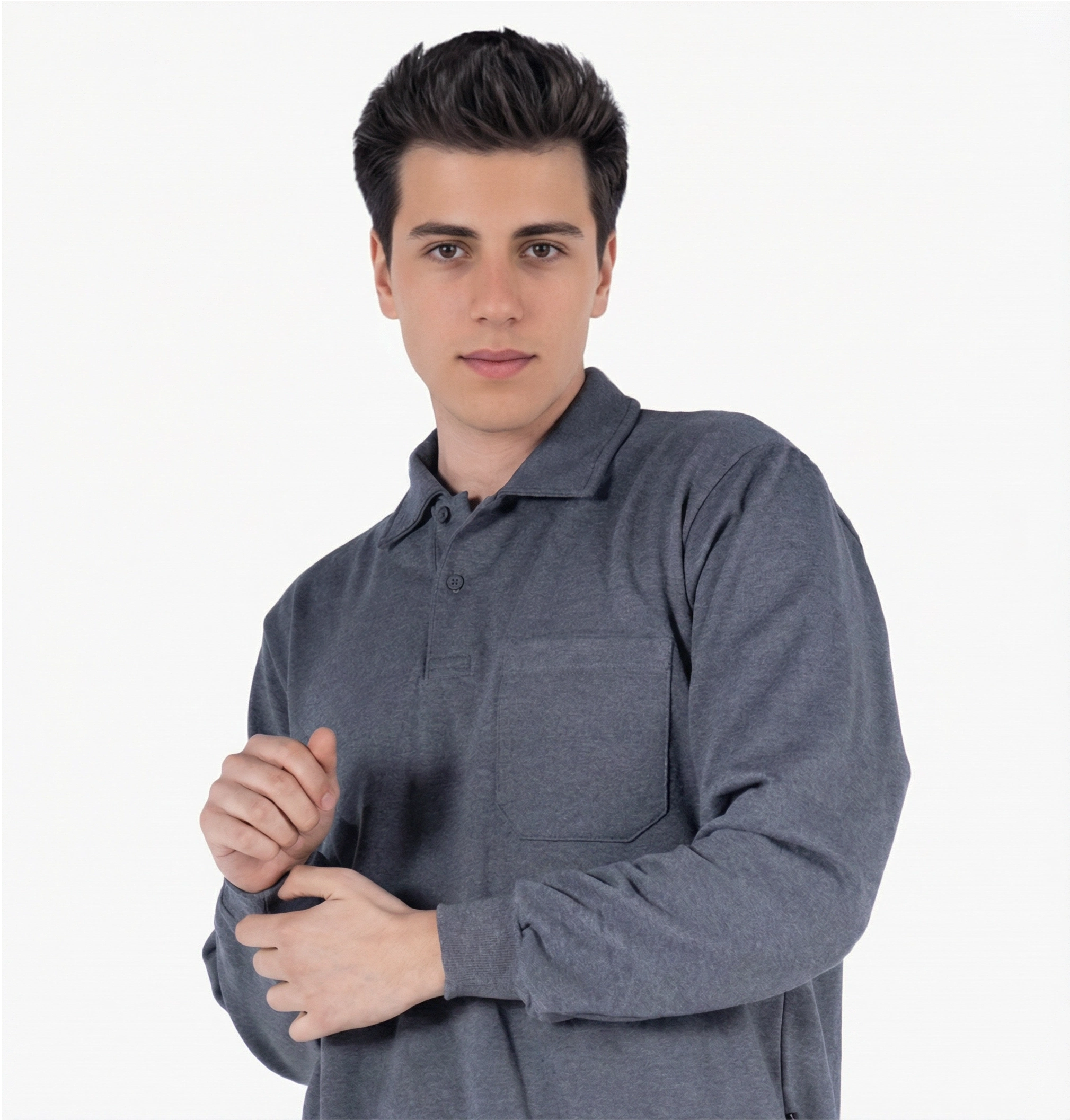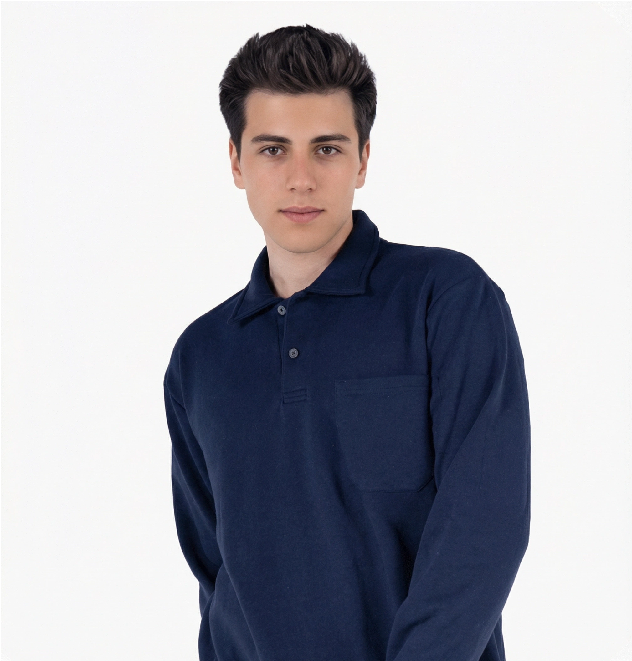 2 İplik Polo Yaka Cepli Sweatshirt