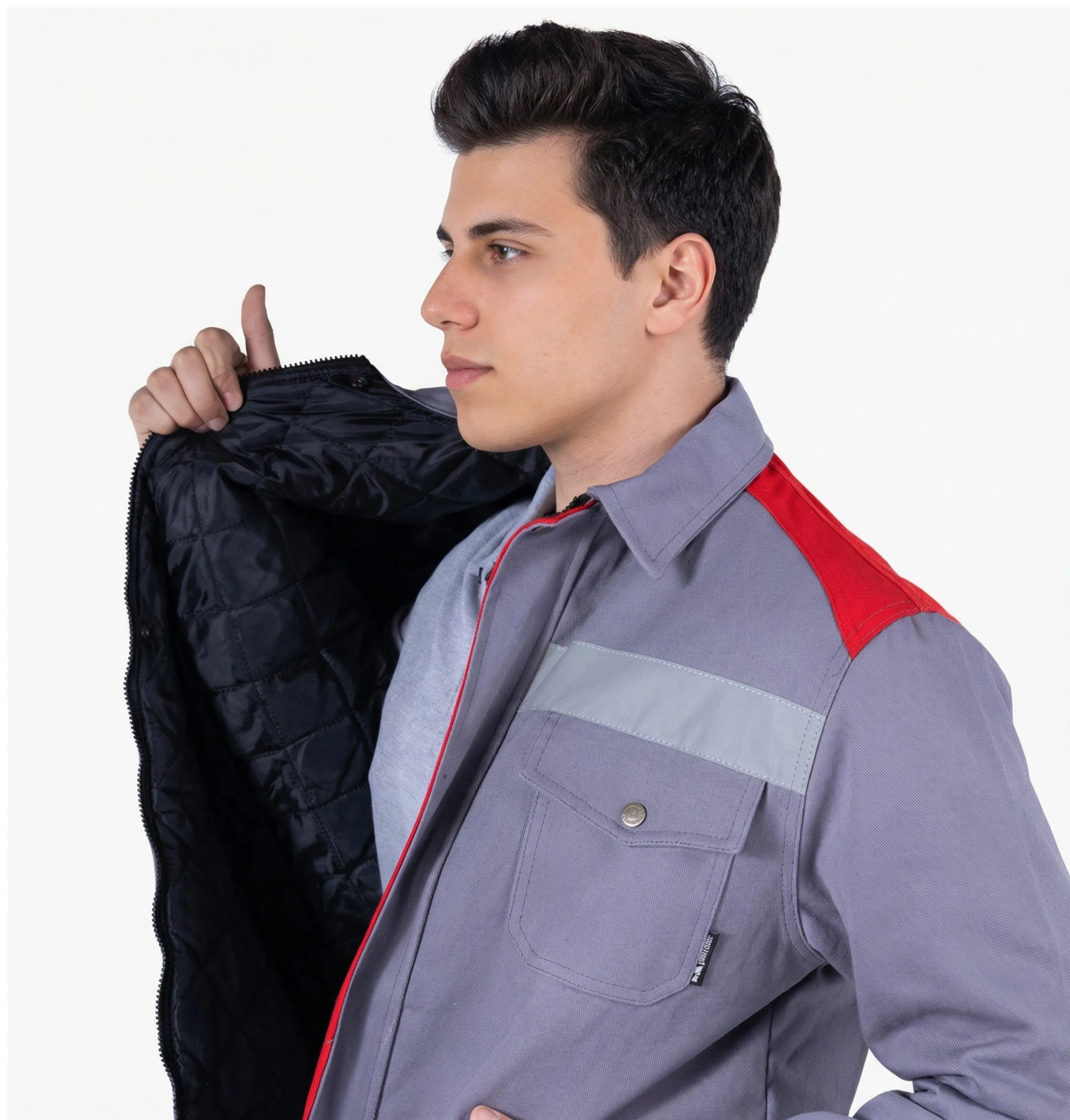 • Sol kolda çift bölmeli kalem cebi, sağ kolda fermuarlı GSM cebi mevcuttur.