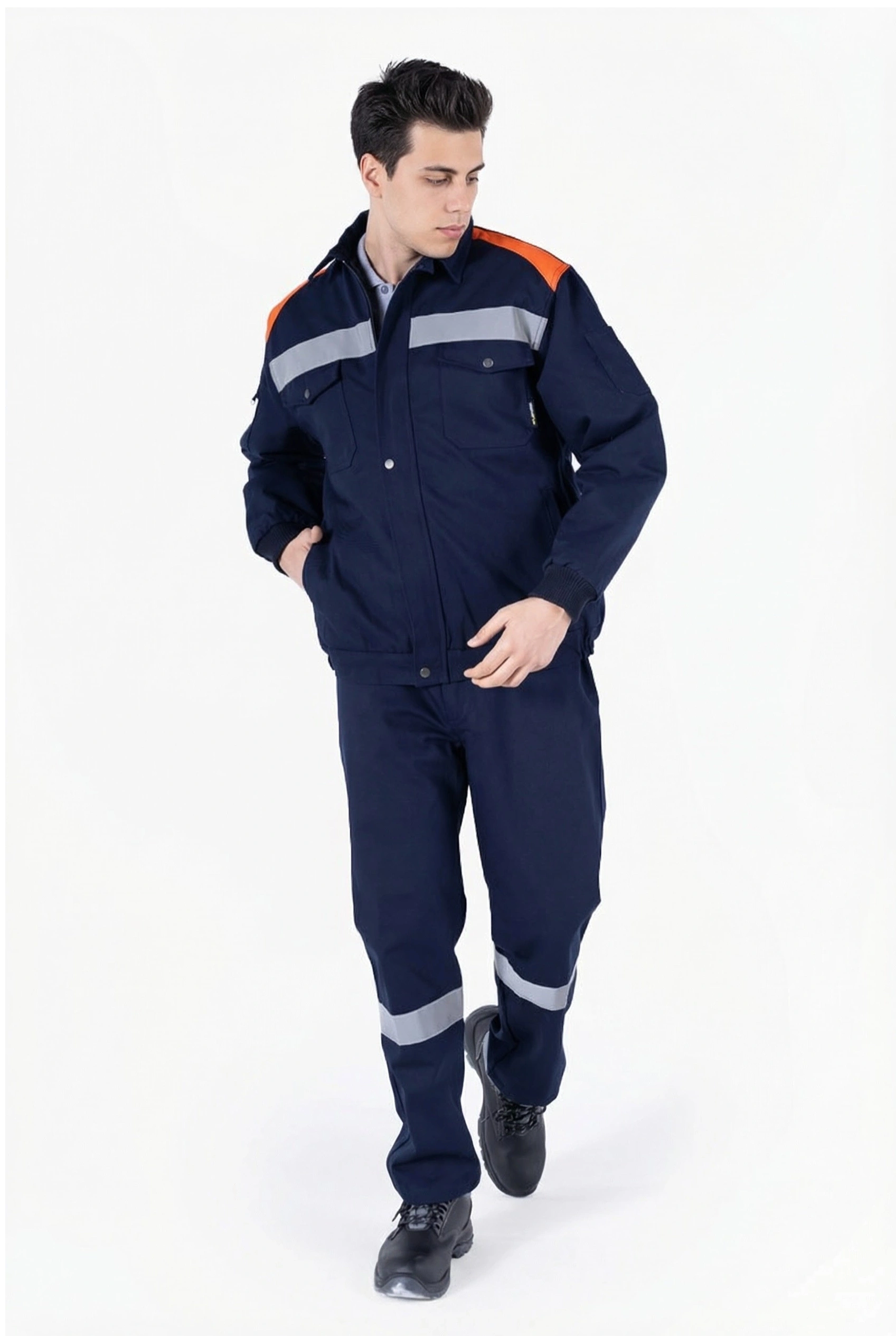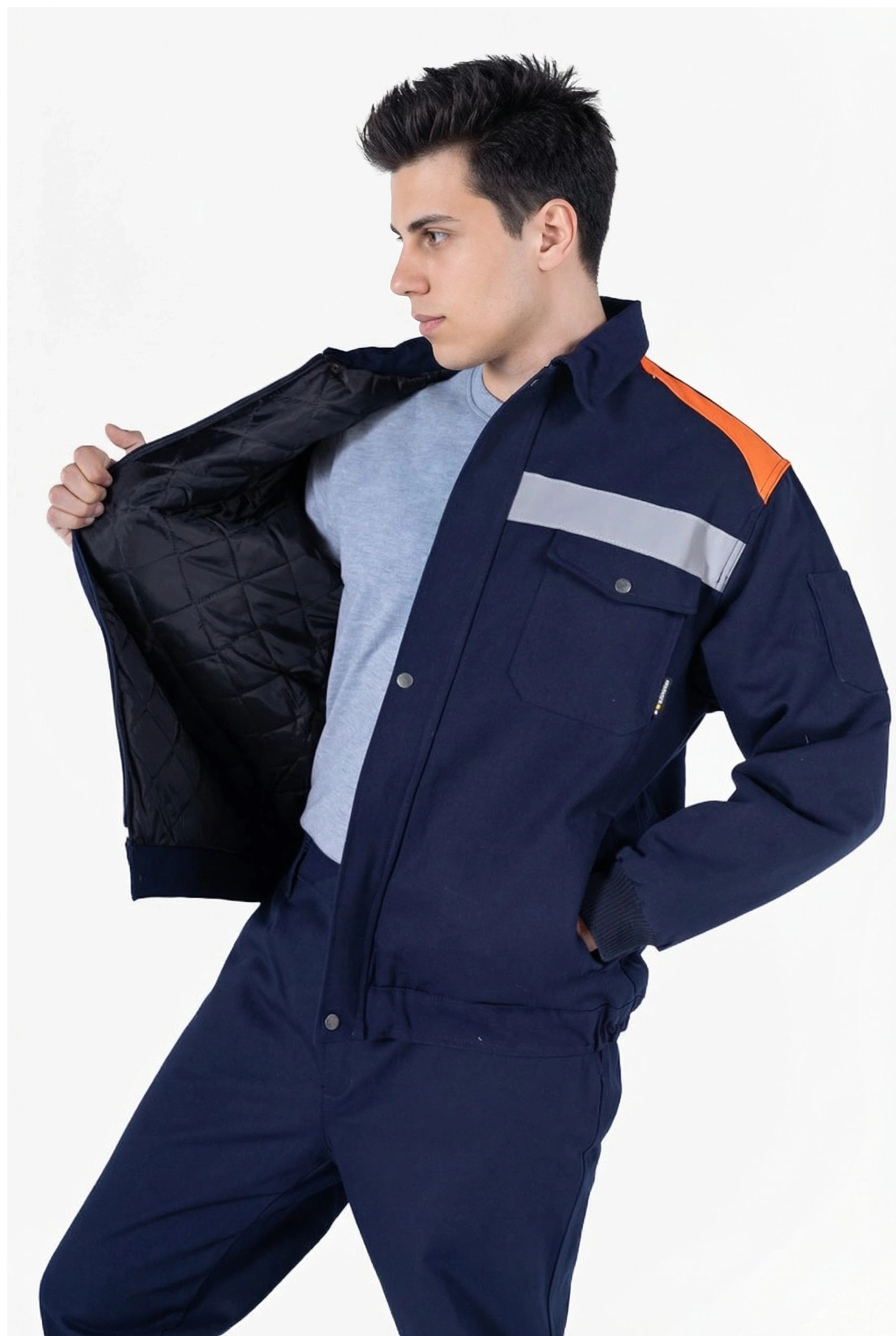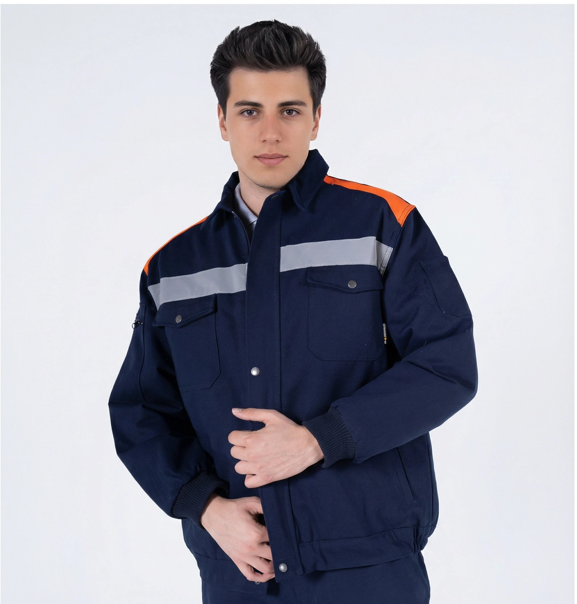 • Sol kolda çift bölmeli kalem cebi, sağ kolda fermuarlı GSM cebi mevcuttur.
