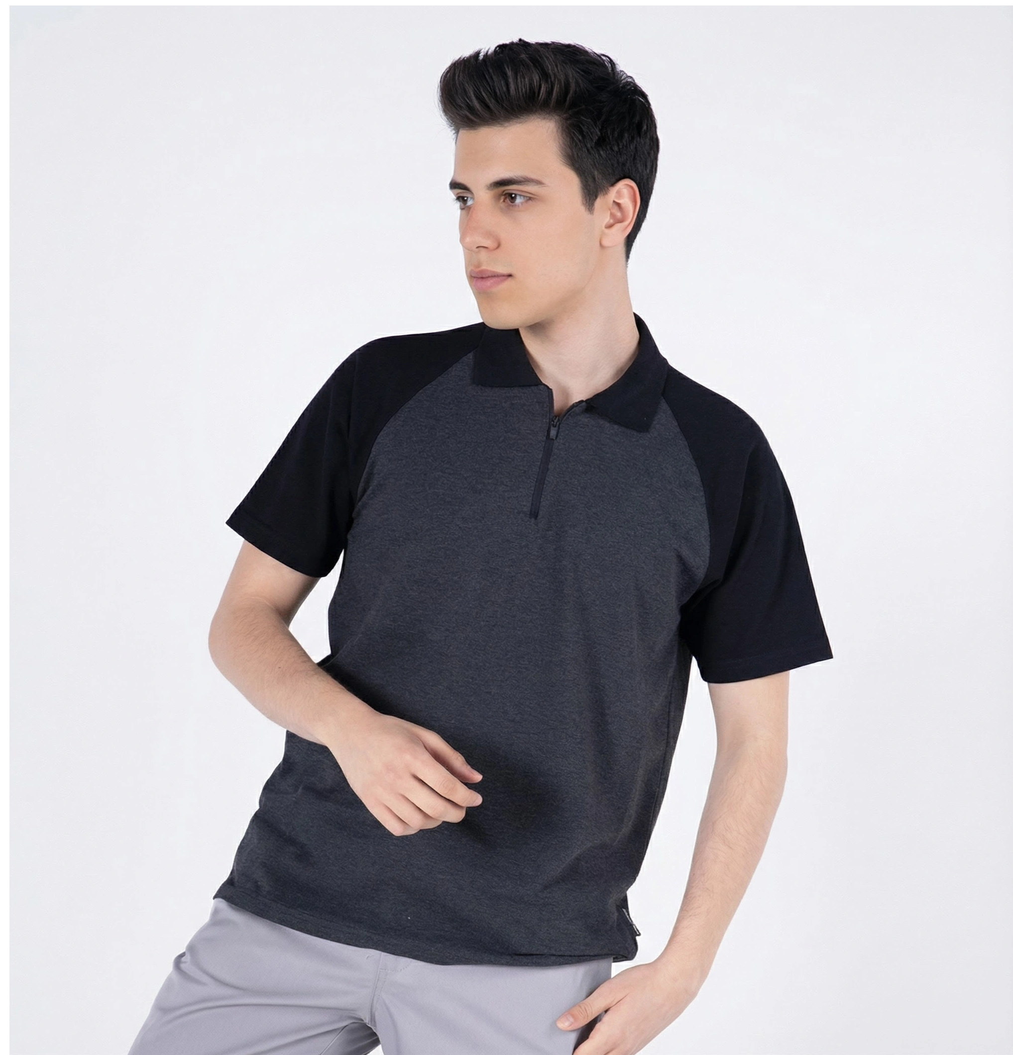 Polo Yaka Fermuarlı Reglan Kollu T-Shirt
