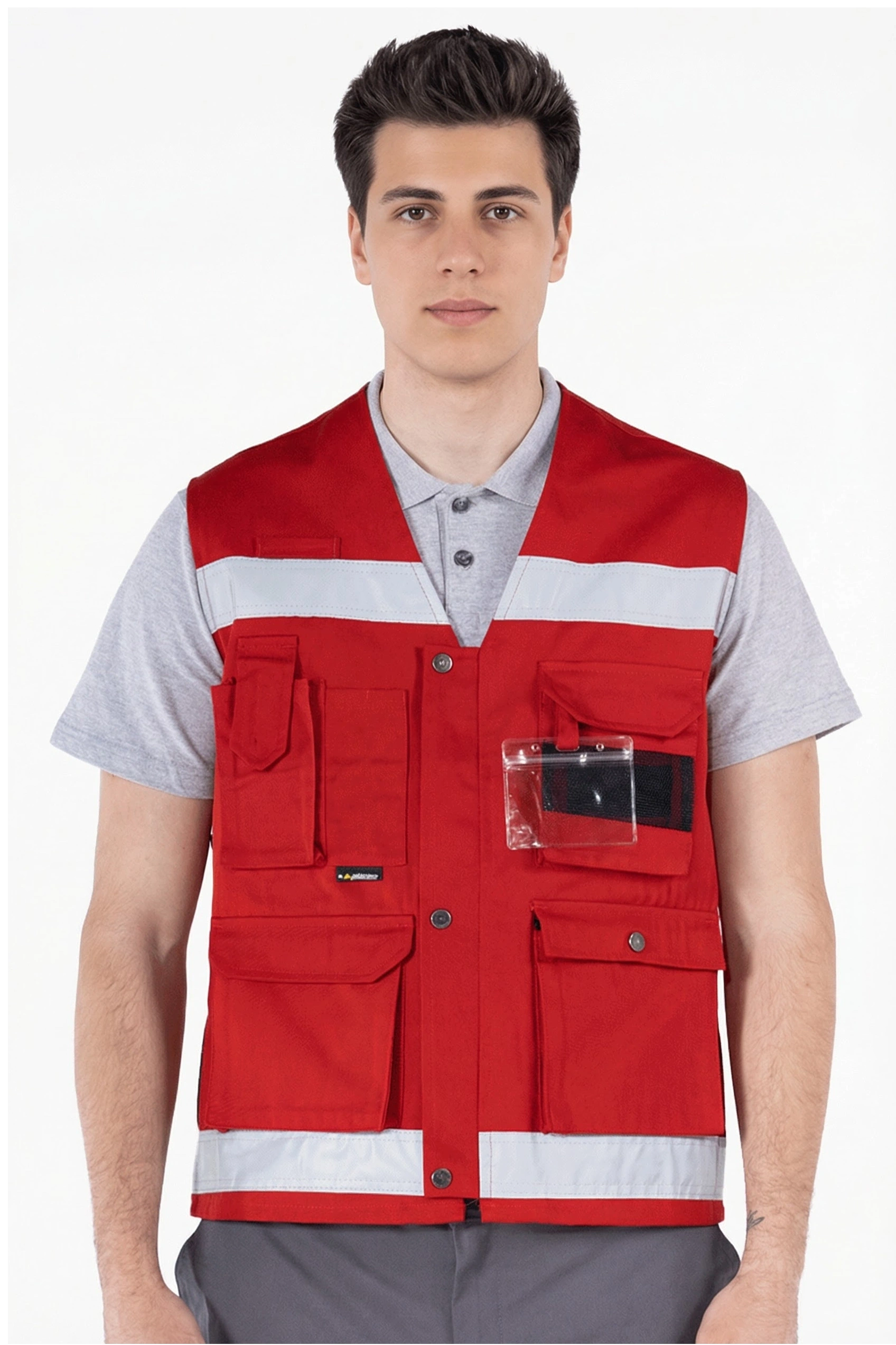 • Sol üst kısımda cırt cırt kapaklı fileli geniş göğüs cebi bulunmaktadır ve cep içi dar dokuma detaylıdır.