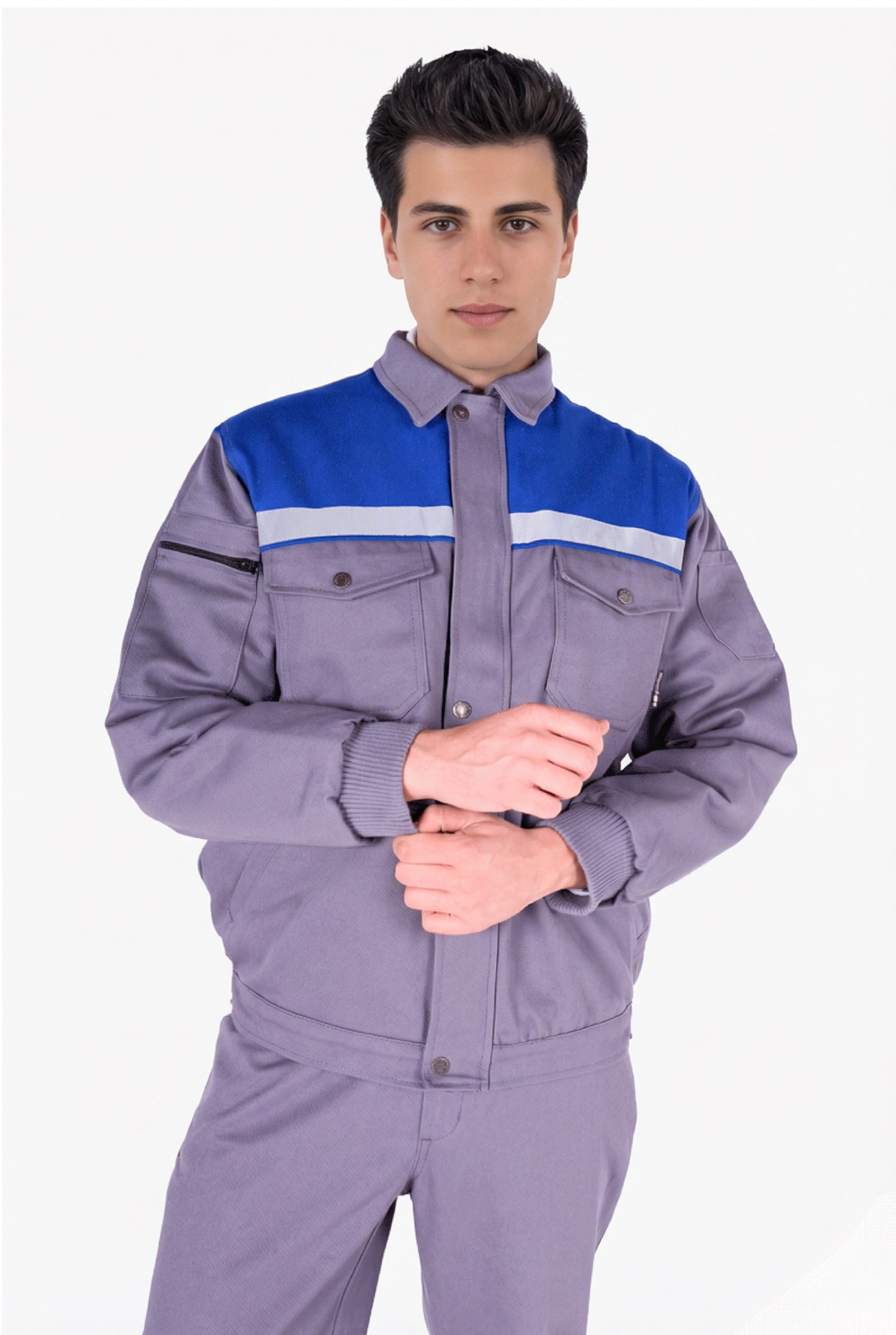 • Sol kolda çift bölmeli kalem cebi, sağ kolda fermuarlı GSM cebi mevcuttur.